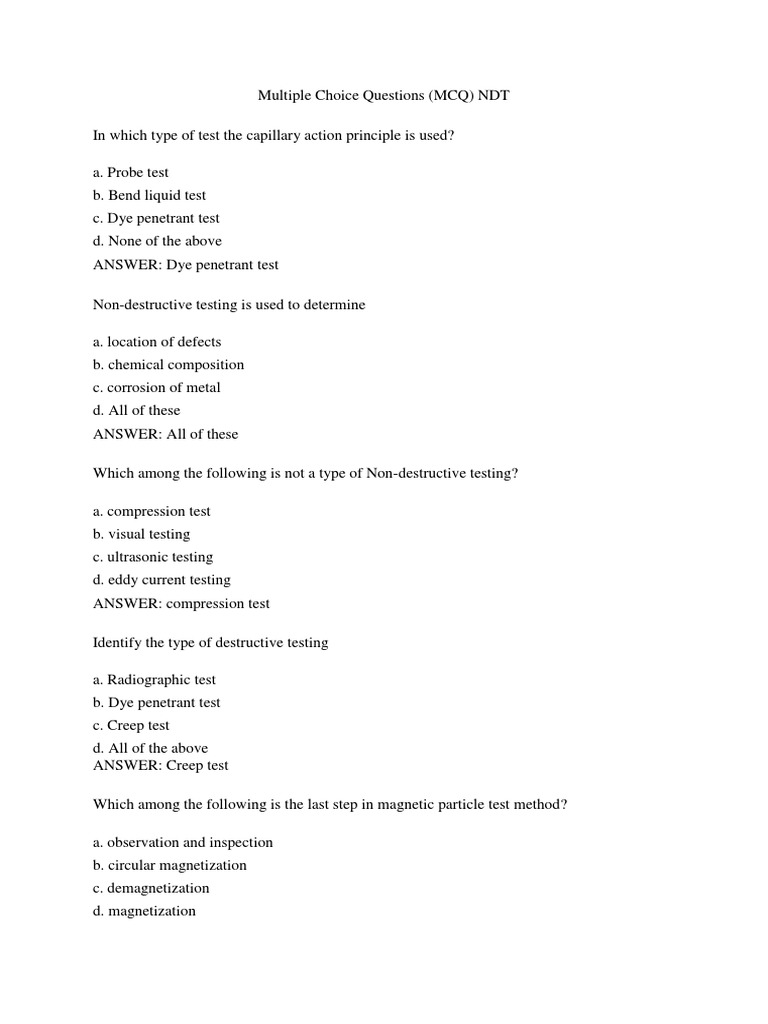 Ndt Mcq Pdf Nondestructive Testing Ultrasound